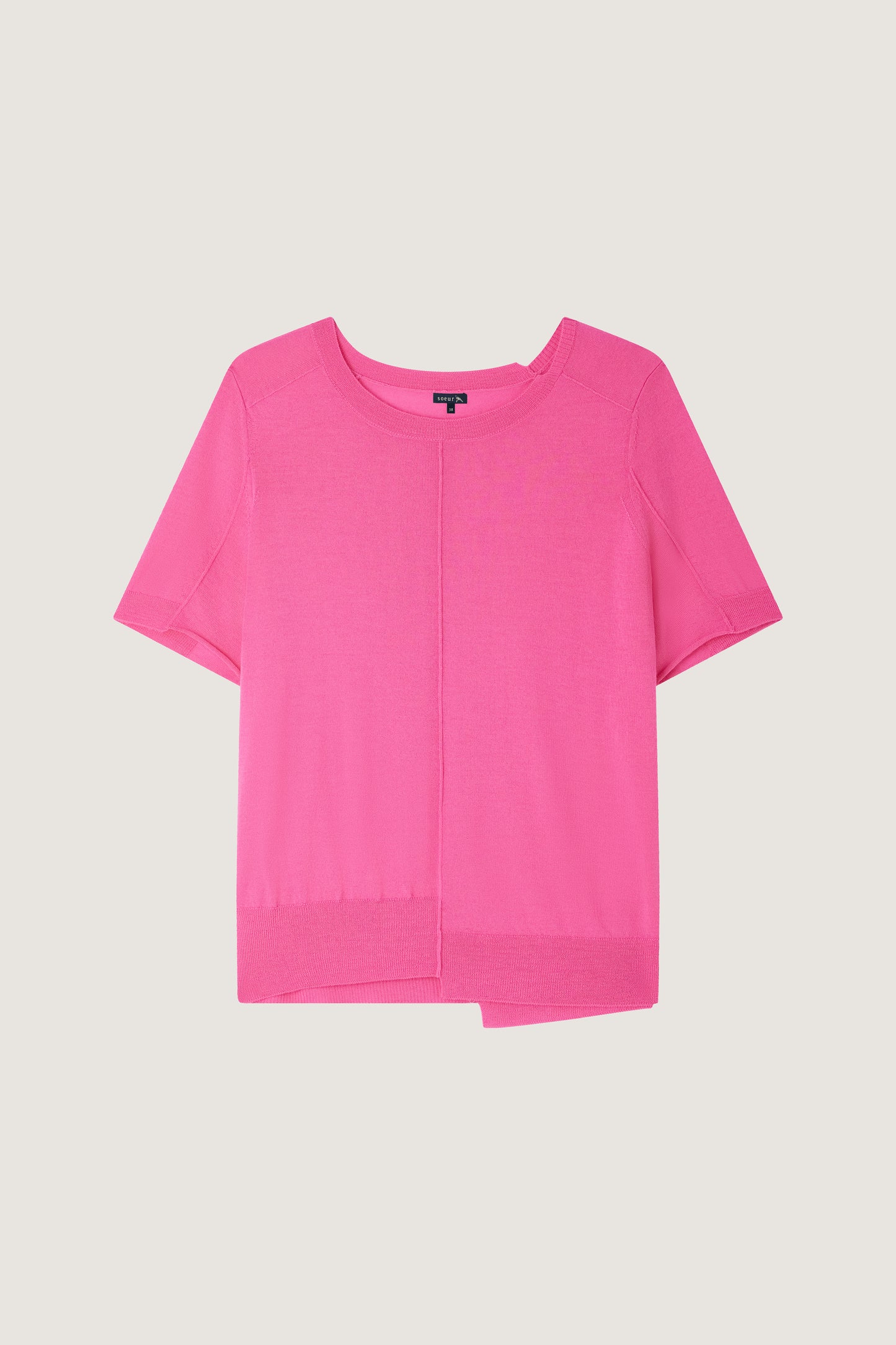 azul jumper Pink short-sleeved extra-fine gauge merino wool jumper with asymmetrical trims