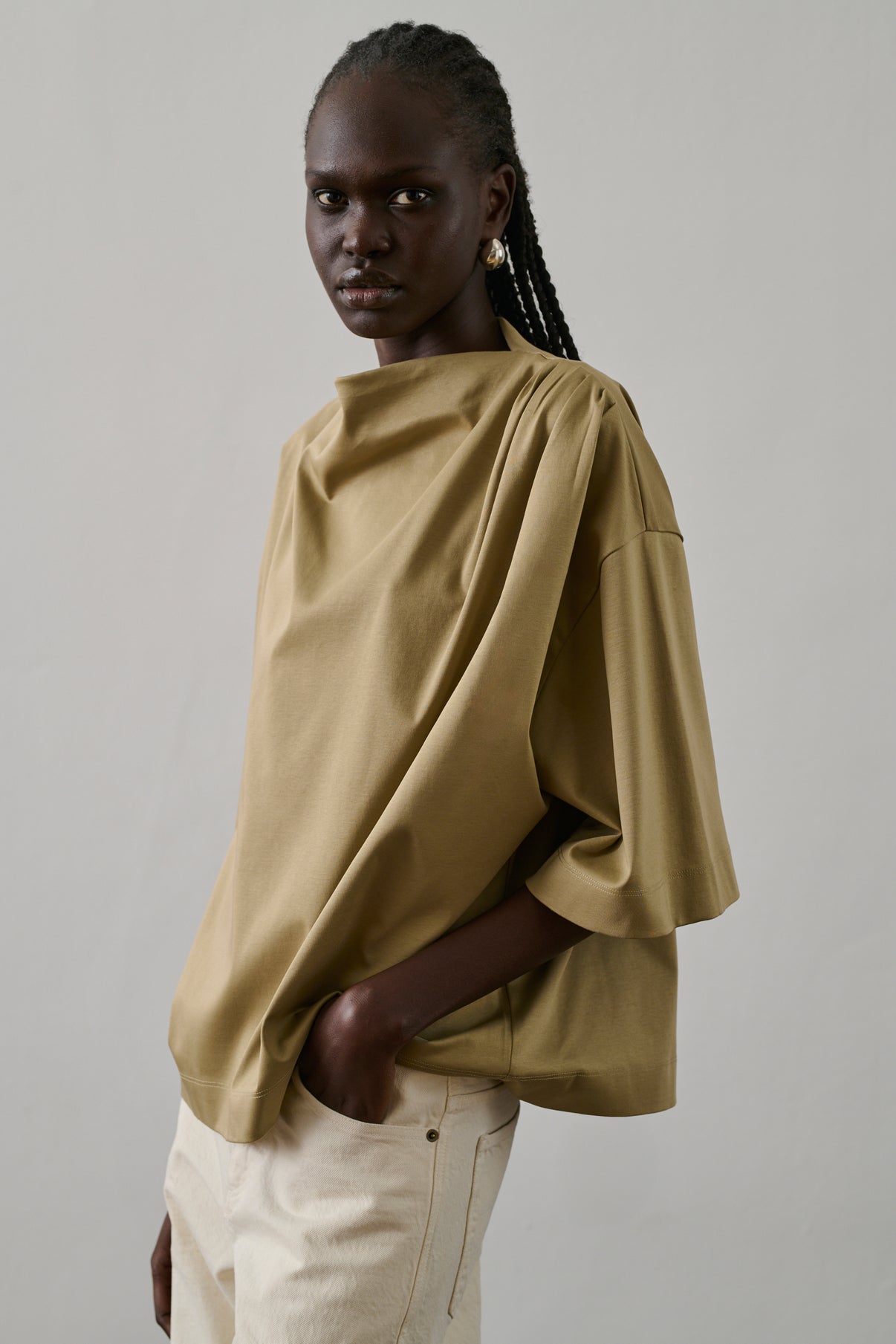 Draped short-sleeves T-shirt beige