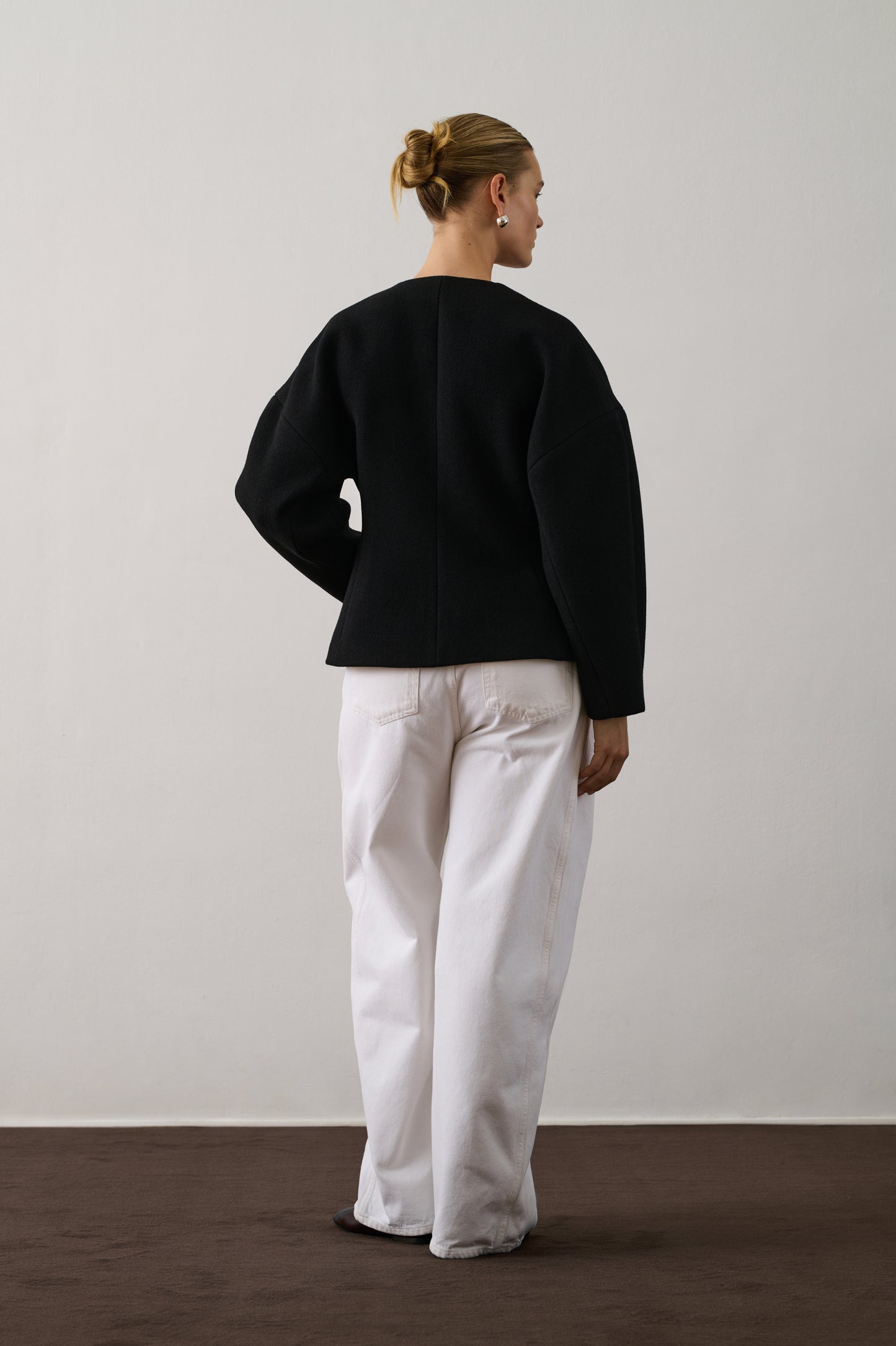 Short jacket in black boiled wool black